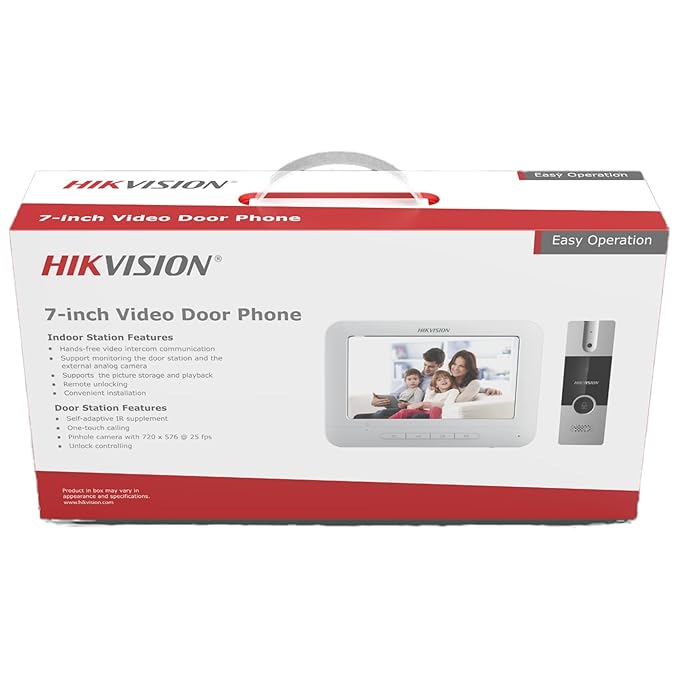 Buy Hikvision DS-KIS204T Video Door Phone online at AKD Mart. 7-inch display, night vision camera, two-way audio, and door unlock support for smart home security.