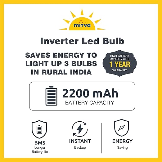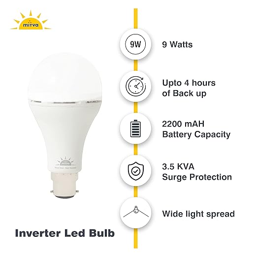 MITVA MSB-922 9W Inverter LED Bulb | 2200mAh Rechargeable Backup Bulb | Auto On During Power Cut