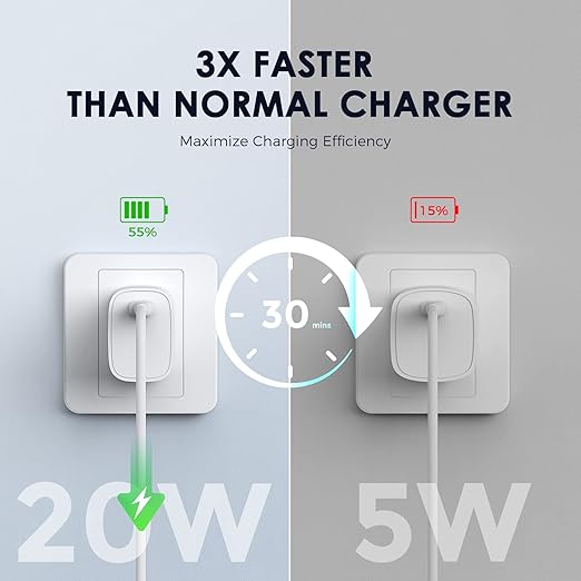 Oraimo 20W Type C Fast Charger Pd 3.0 Usb C Wall Adapter Compatible For Samsung Galaxy S22 S21/S21+/S21 Ultra/S20/S20+/S20 Fe/Note 20 Ultra/10, Google Pixel 6/5/4, White