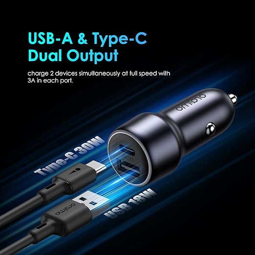 Oraimo Bullet 48W Car Charger | Dual Output Car Adapter | Type-C PD 30W + QC 3.0 Fast Charging | Model OCC-73D