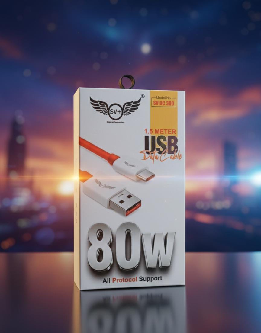Buy SV+ 80W USB to Type-C fast charging cable at AKDMart Bandipora. Supports Quick Charge, Warp & SuperVOOC. 1.5m durable cable with 6 months warranty. Fast delivery across Bandipora.