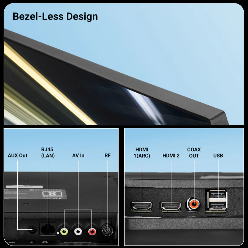 The TV comes equipped with HDMI, USB, and AV inputs, allowing easy connection with set-top boxes, gaming consoles, or streaming devices. With its slim bezel design and energy-efficient LED panel, it’s a stylish addition to your home entertainment setup.